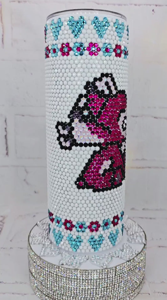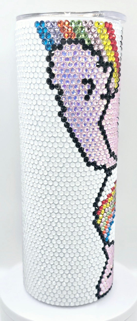 This design comes from our exclusive Rhinestone Tumbler Kits and is fully completed for your convenience — no crafting required! All the hard work has been done for you. Each 20oz tumbler takes between 7–8 hours to complete, ensuring a high-quality, dazzling result.