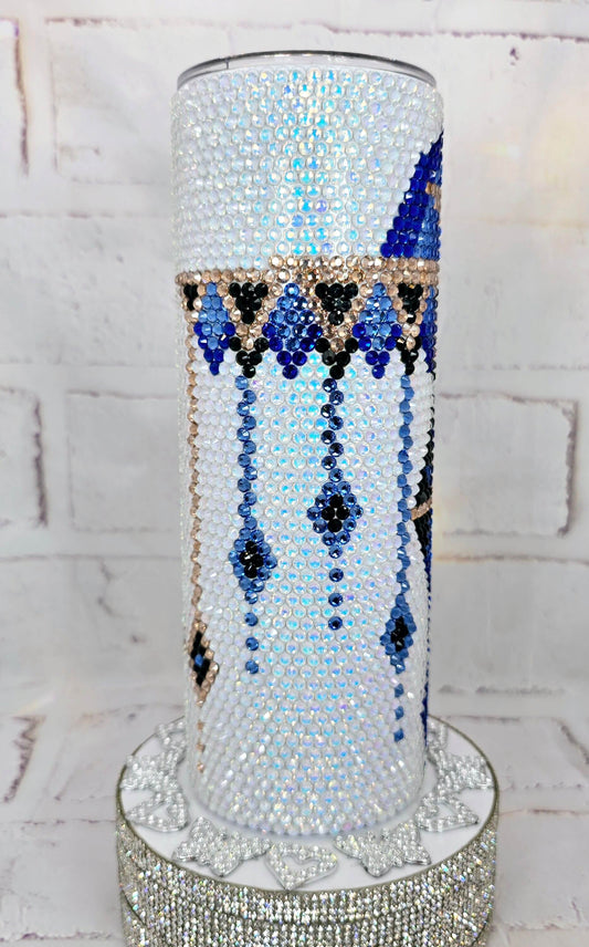 This design comes from our exclusive Rhinestone Tumbler Kits and is fully completed for your convenience — no crafting required! All the hard work has been done for you. Each 20oz tumbler takes between 7–8 hours to complete, ensuring a high-quality, dazzling result.