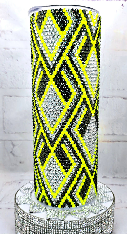 1055 Neon Yellow Arrows 20oz Rhinestone Tumbler