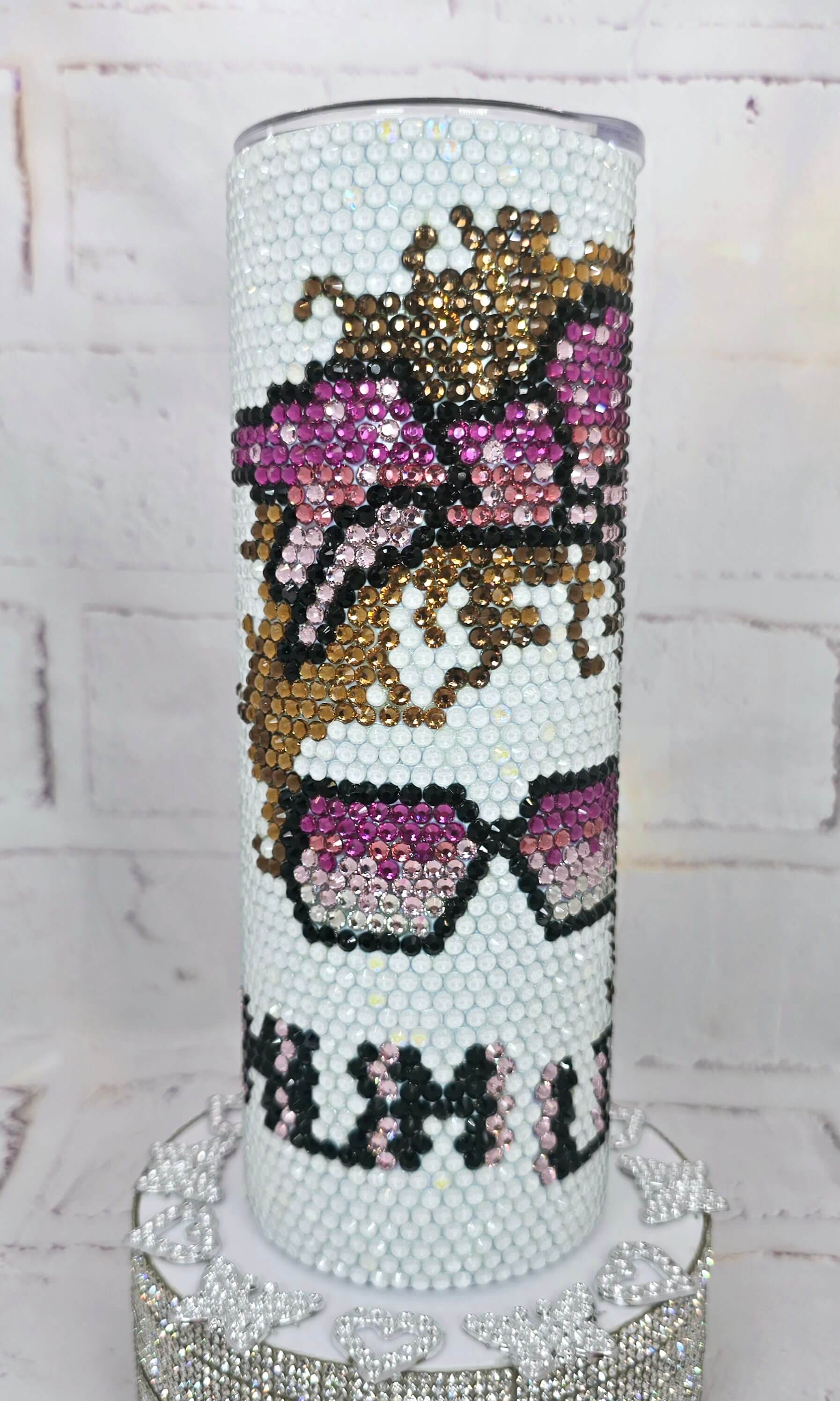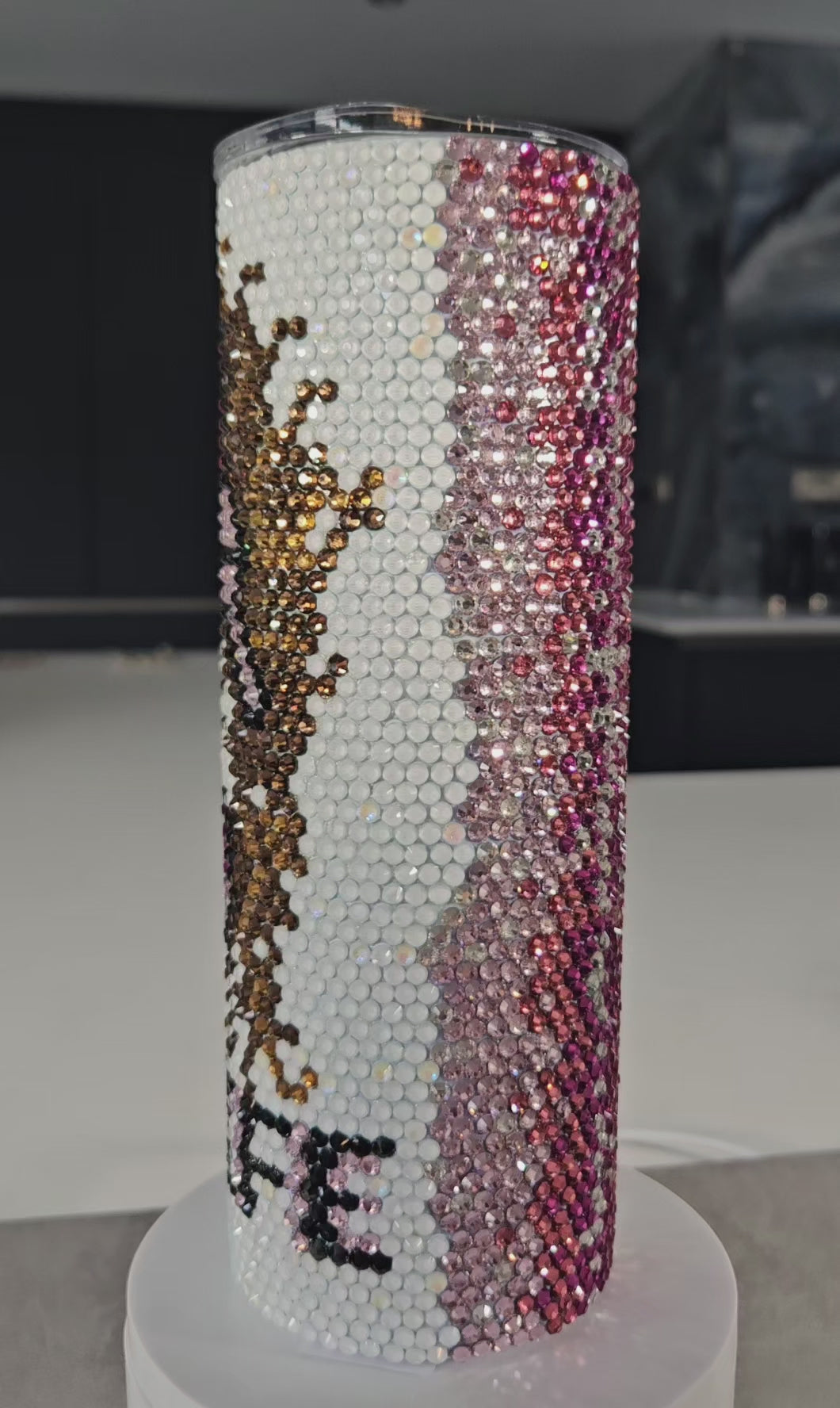 This design comes from our exclusive Rhinestone Tumbler Kits and is fully completed for your convenience — no crafting required! All the hard work has been done for you. Each 20oz tumbler takes between 7–8 hours to complete, ensuring a high-quality, dazzling result.