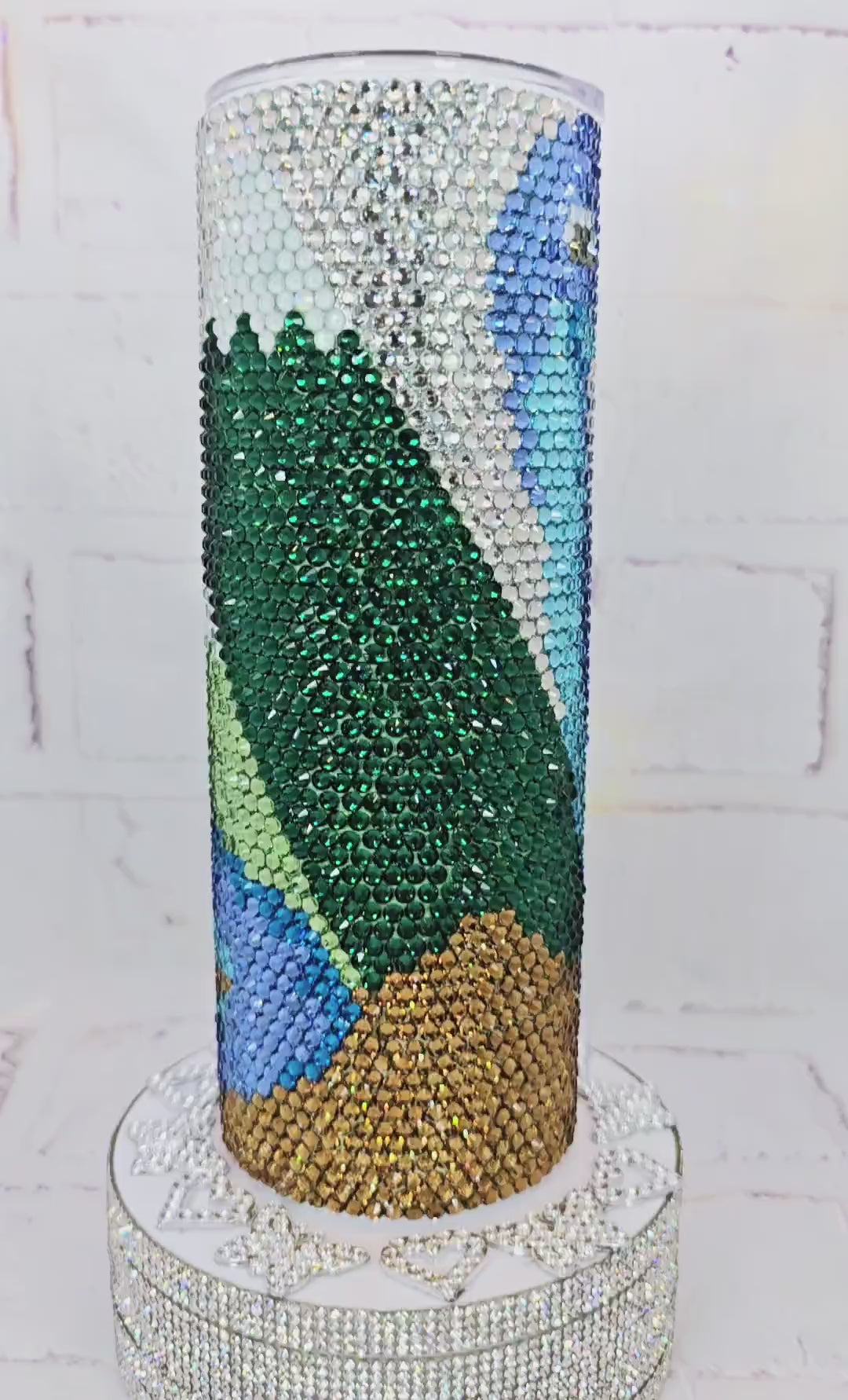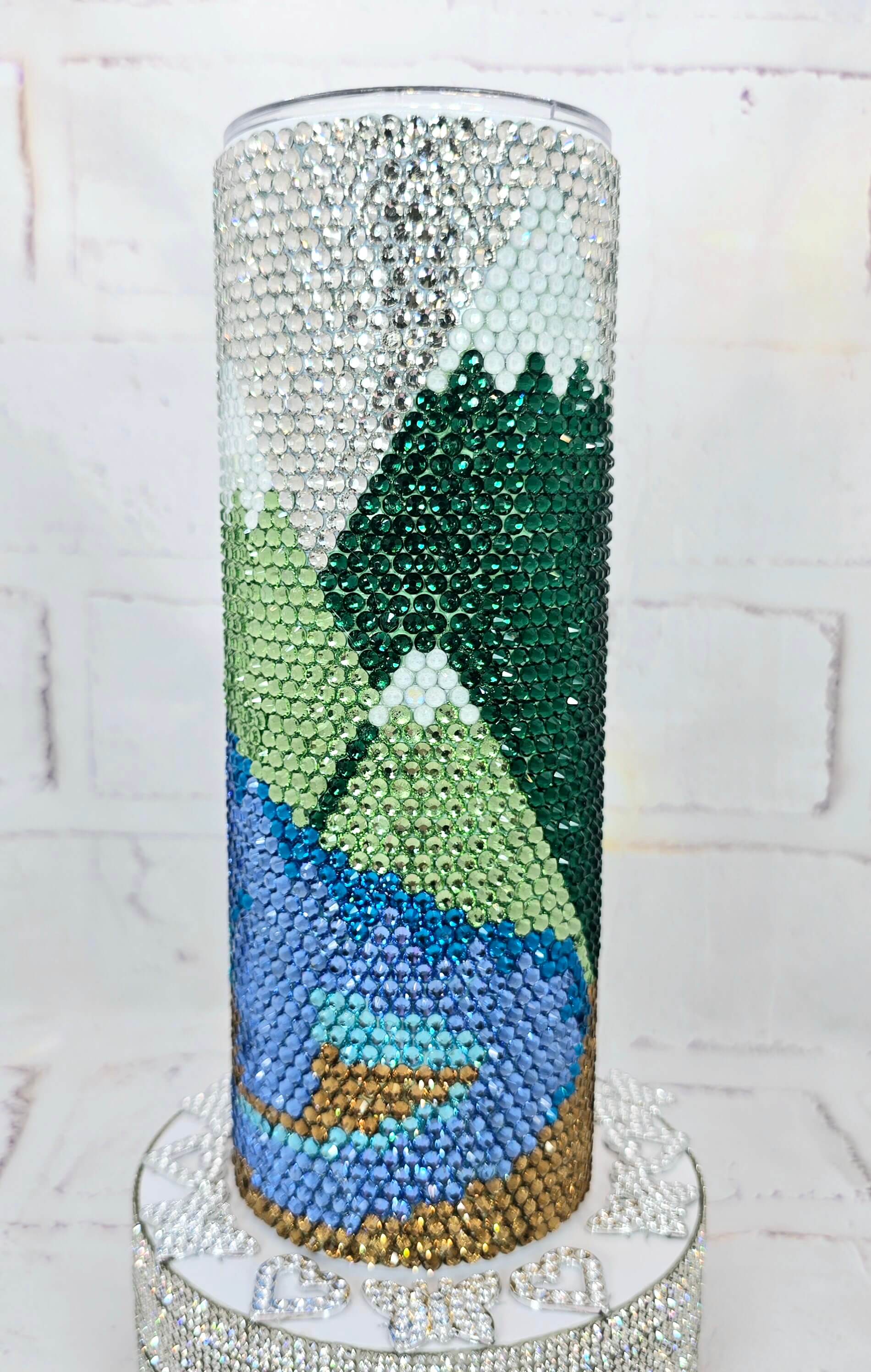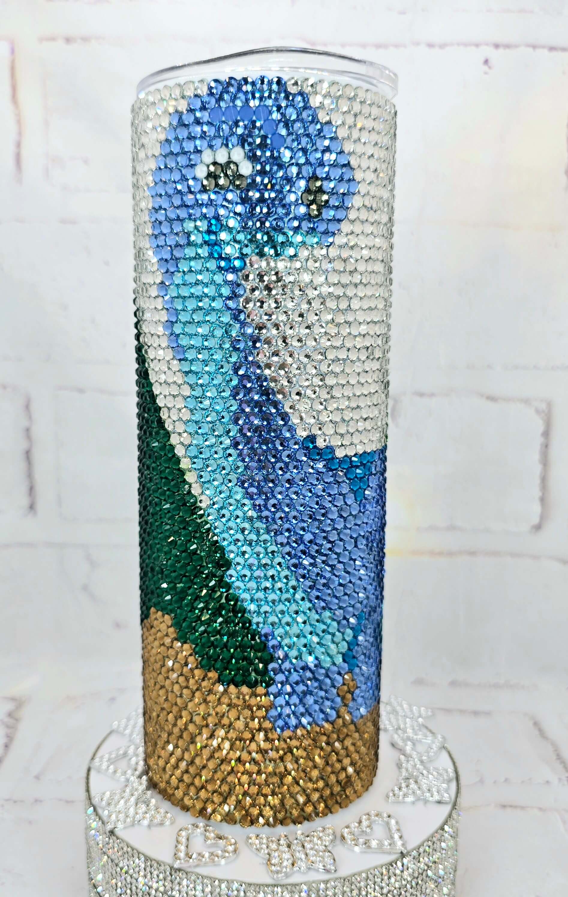 This design comes from our exclusive Rhinestone Tumbler Kits and is fully completed for your convenience — no crafting required! All the hard work has been done for you. Each 20oz tumbler takes between 7–8 hours to complete, ensuring a high-quality, dazzling result.