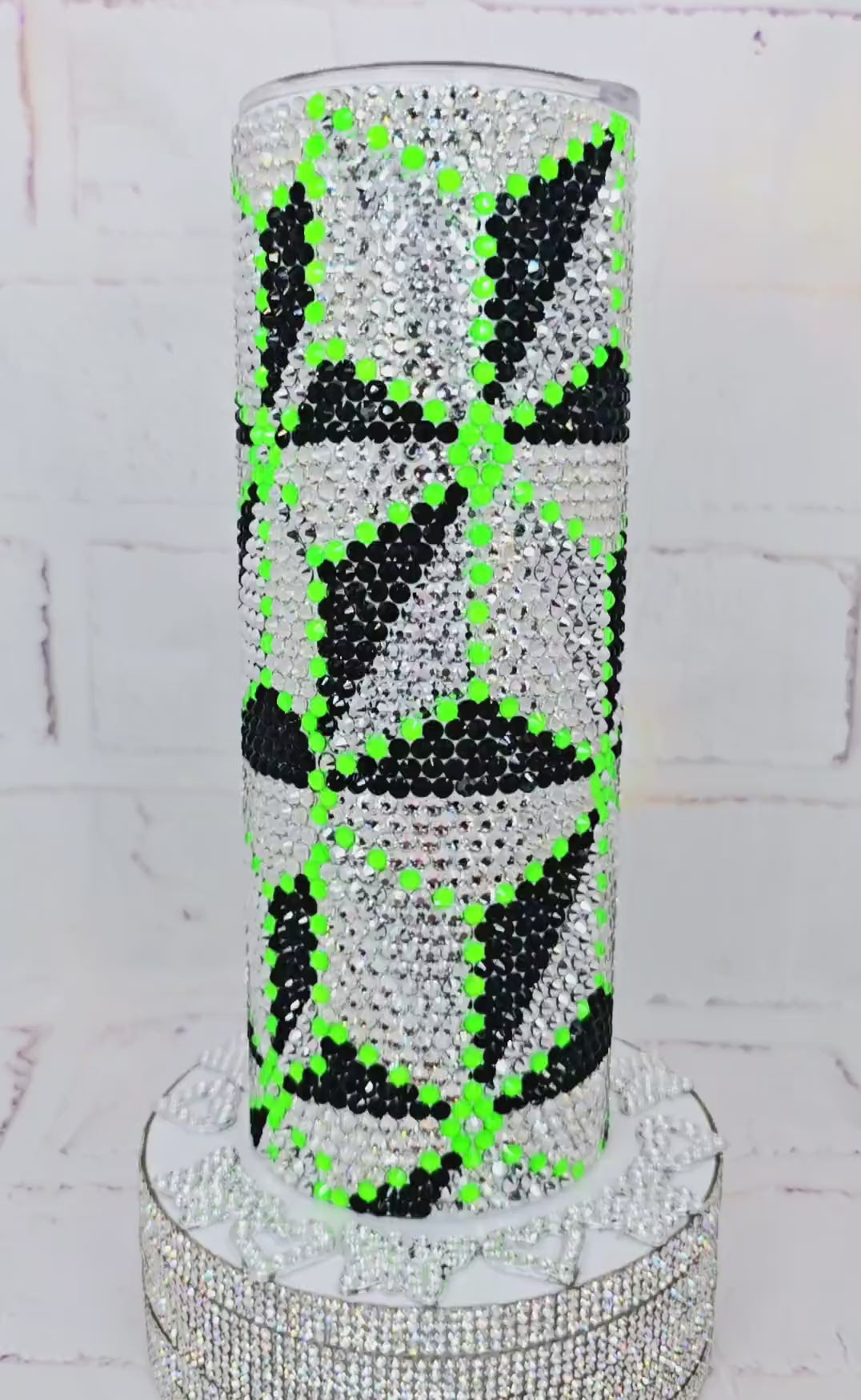 1055 Neon Green Arrows 20oz Rhinestone Tumbler
