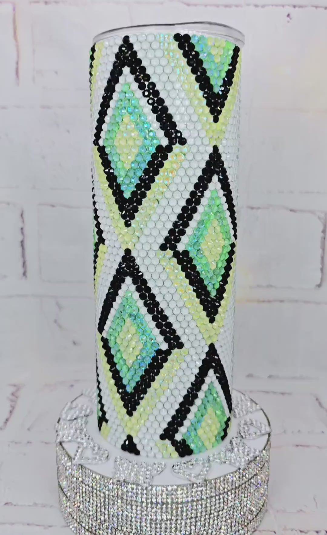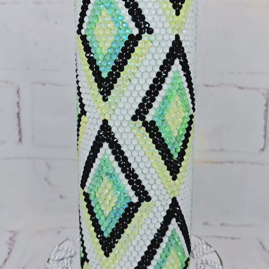 Enjoy your favourite hot or cold drinks in style with this stunning handmade 20oz rhinestone tumbler. Each glass rhinestone has been individually placed by hand, creating a sparkling and elegant finish that truly stands out.